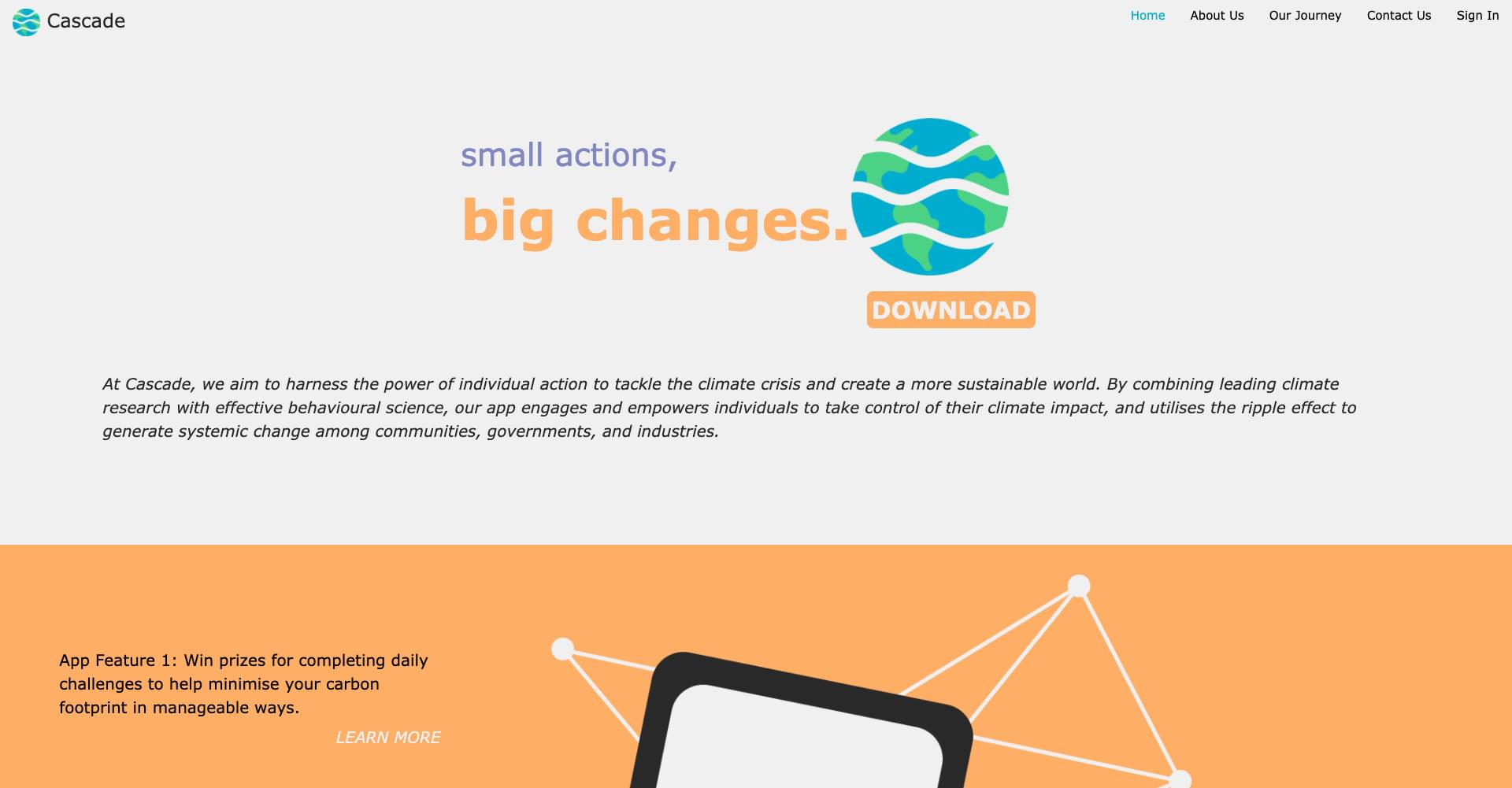 Cascade is a Cambridge University society which aims to create a data-driven sustainability app. The goal is to help individuals control their climate impact and use that momentum to make change among communities, governments and industries.